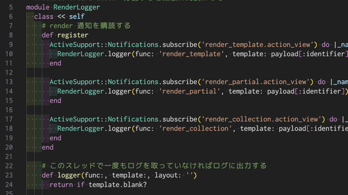 ActiveSupport::Notifications で render_template 系のイベントを購読し、初回のみログに出力するようなコードを追加しました。